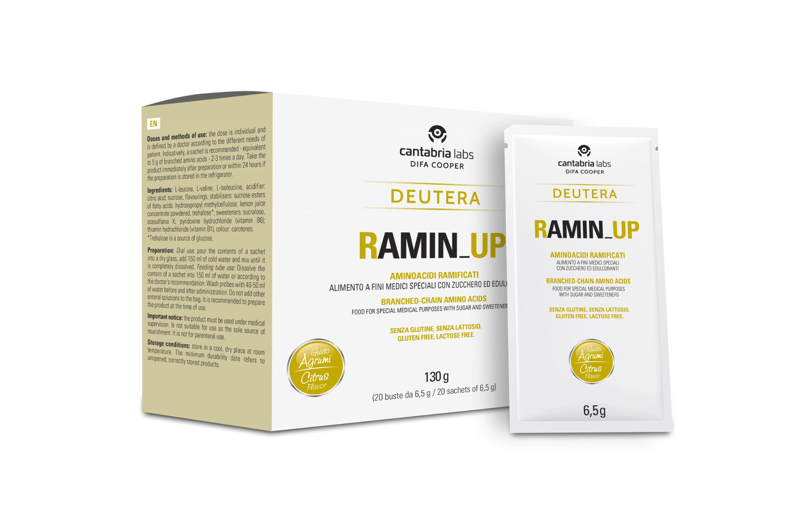 RAMIN_UP è un alimento a fini medici speciali in polvere, indicato per la gestione dietetica di pazienti con aumentato fabbisogno di aminoacidi ramificati come nella patologia epatica (insufficienza epatica, cirrosi, encefalopatia epatica).